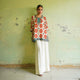 Paired with it is a short slip and raw silk boot cut pants. The pants have pin tucks and a slit on the front. This contemporary ensemble is perfect for easy and effortless elegance.