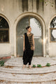 This deep magenta printed silk kaftan is ideal for an evening edit. Its detailed neckline and embellished sleeves add to its allure. Featuring classic ‘chandbali’ motifs in between the embellishment, this kaftan is something to be worn on repeat.