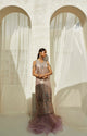 A chic front open pure Raw Silk jacket with breathtaking organza weaving on the front with patchwork, resham, mukesh and zardozi on the front, and a detailed resham and zardozi jaal on the sleeves. It is paired with a heavily embellished inner and flared pure Raw Silk pants making this ensemble both festive and elegant.