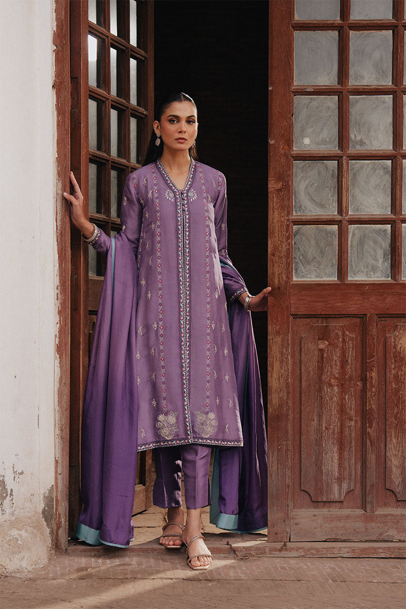 Paired with a raw silk chaddar, finished with a subtle border and an all-over buti spray in cool ivory and pastel tones, the ensemble feels elevated and complete. Thoughtfully balanced and effortlessly refined, ANISA is designed for those who appreciate tradition reinterpreted with softness, restraint, and enduring elegance.