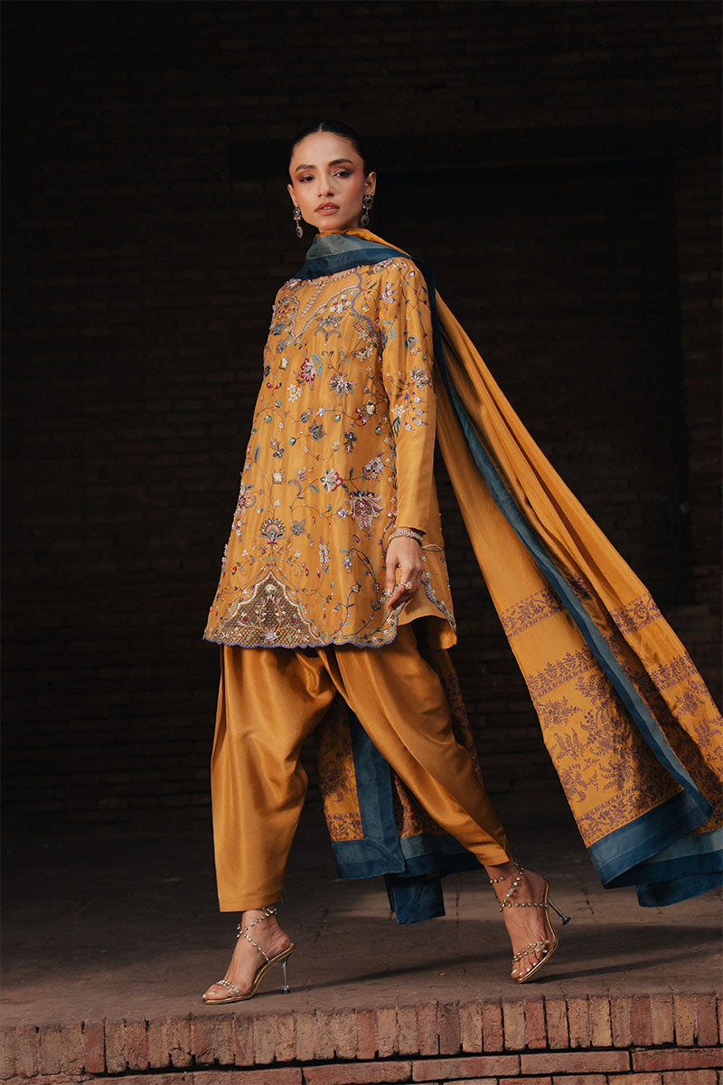 Paired with a printed pure medium silk dupatta, the palette feels fresh, joyful, and effortlessly styled. Designed for light-hearted occasions, SAMAR blends colour, craft, and comfort in a way that feels fun, feminine, and easy to wear.