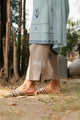 A deep maroon woolen shirt, woven in the comforting weight of winter. The silhouette flows with ease, detailed with handcrafted patti work along the sleeves and front, each motif echoing the quiet rhythm of artisan hands. Every stitch carries a story of touch and time, where winter finds its hue in crimson. Rahin feels both grounded and graceful, a keepsake of craft woven into comfort.