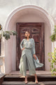 This long Peridot shirt is one that will surely turn heads. Made from pure Raw Silk, the soft silhouette is accentuated by pintucks crafted with handmade Organza lace detail on front. The outfit can be paired with crocheted bordered Raw Silk pants. The outfit can be completed with a hiran jaal embroidered Raw Silk dupatta finished with fine Chiffon lining!
