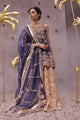 A unique pure French Net shirt accentuated with deep teal coloured patchwork with gold and silver zari work. This decadent mint hued shirt is layered with a dreamy farshi silver Tissue Jamawar lehenga beautifully hand and patchworked. The look is draped in a net hand worked dupatta. This ensemble is the statement of romance and elegance.