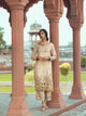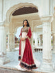 A stunning lehenga-choli set that we are absolutely obsessed with. Featuring a rich navy blue velvet choli with coral giving you the best fall as well as ample volume for that perfect twirl! The choli is a work of art and totally swoon-worthy! It comes with unimaginable detailing on the ultra-flattering cutline and the cut work back. The body is adorned with intricate cut dana with resham kaam and hand-crafted jeweled motifs that make the outfit unforgettably unique. The Katan Silk Jamawar Dhaka with hand-made gota detail is finished with a rust border. A stand apart look for any festive event; the Lehenga-choli promises to wow wherever you go!
