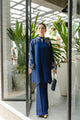 The Aqua Cleo top is perfect for any soiree! Create an elegant look with this pure Cotton Net loose cut top with a hand embroidered neckline with Swarovski detail. Pair it with a matching Raw Silk floral scalloped pant.