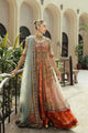 Feel swept away in this tissue patchwork jacket with delicate floral detailed design all over the front. Shades of tissue are finely embroidered in gold and silver zardozi, and Mukesh work that is complemented with hand resham.