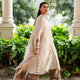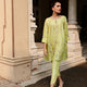 This refreshing lavender hued Silk Organza cape is adorned with pastel embroidered floral motifs with hints of Swarovski’s. This modern effortless silhouette is an epitome of elegance. It is paired with loose dhaaka pants that give it an eclectic feel. Top: Tissue Organza (one size) Pant: Raw Silk