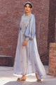 A loose, one-size top crafted in soft blended charmeuse, finished with delicate detailing along the neckline and a light, fluid drape. Paired with draped dhoti-style pants in a lighter tone, the look creates a subtle yet impactful contrast. Designed for comfort and ease, this set moves effortlessly from daytime to relaxed evening dinners, balancing softness with a chic, modern cut.