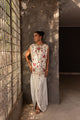 Introducing our smoke Grey pure self-cotton net pishwas with raw silk panels with pin-tuck detail. It exuberates elegance and poise. This pishwas boasts exquisite hand-embroidery featuring self reesham and french knots on the front, neck, sleeves and ghera. It is paired with pure raw silk straight pants. This ensemble radiates sophistication. Complete the look with an Aneeka Ruknuddin classic kaantha dupatta for an added touch of grace and subtlety.